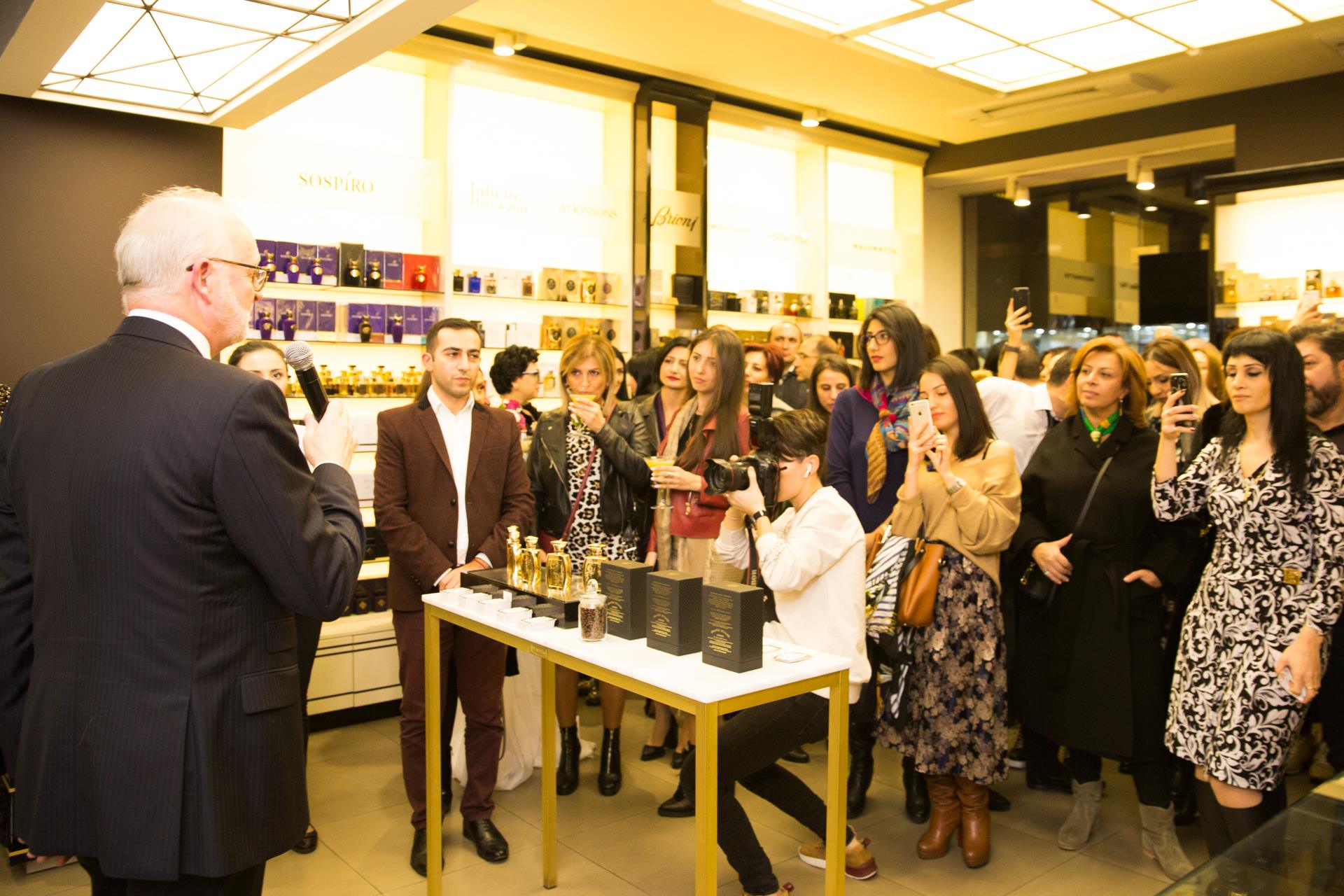 Franck Muller ապրանքանիշի բույրերի շնորհանդեսը տեղի ունեցավ Սայաթ-Նովա 8 հասցեում գտնվող Hermitage խանութ-սրահում: Իսկ հայտնի 5 բույրը ներկայացնելու համար Հայաստան էին ժամանել բրենդի ներկայացուցիչները. Հիմադիր Stephen Gray է, վաճառքի տնօրեն Martin Trout և բրենդ մենեջեր Tabitha Gray է: